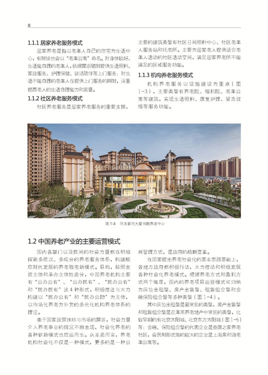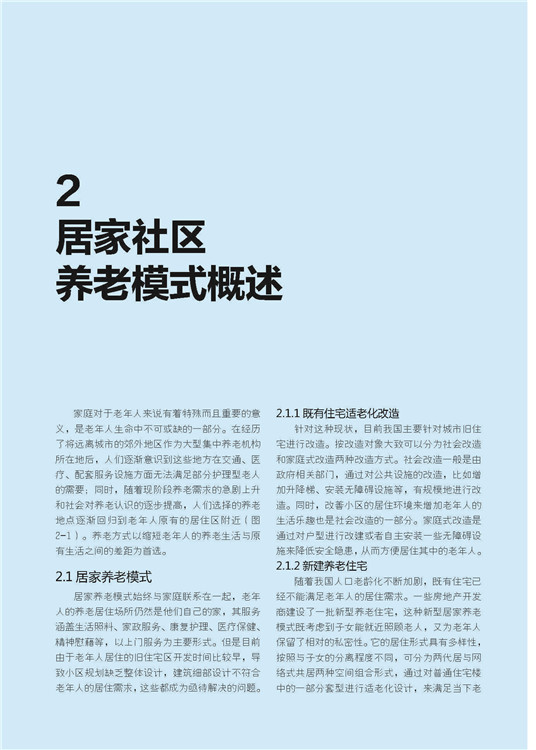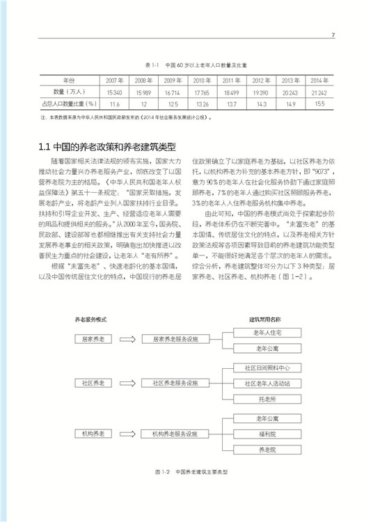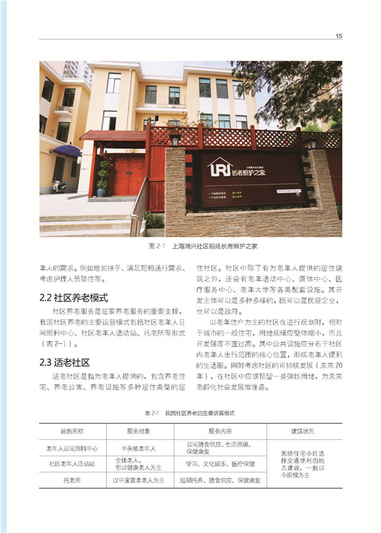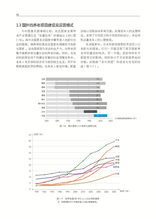 面对全世界老龄化进程的飞速发展,世界各国都在持续关注养老产业的发展,不同国家针对自己的国情和文化习惯采取着不同的应对策略。中国作为一个人口大国,在养老事业发展的初级阶段也正在不断地摸索。经历了郊区大规模新建养老社区的开发模式之后,养老项目的发展正在渐渐回归到老年人原有的生活场所:适老化住宅、老年公寓、社区老年人活动站的兴建,促进了以居家养老为中心的发展。随着现阶段养老需求的急剧上升和社会对养老认识的逐步提高,人们选择的养老地点逐渐回归到老年人原有的居住区附近。养老方式以缩短老年人的养老生活与原有生活之间的差距为首选。所以,本书不仅可以成为参与养老项目的设计人员的参考书,也为各类养老机构的投资者、经营者以及养老服务体系中的服务人员等相关人士在管理和运营方面提供有价值的依据。
