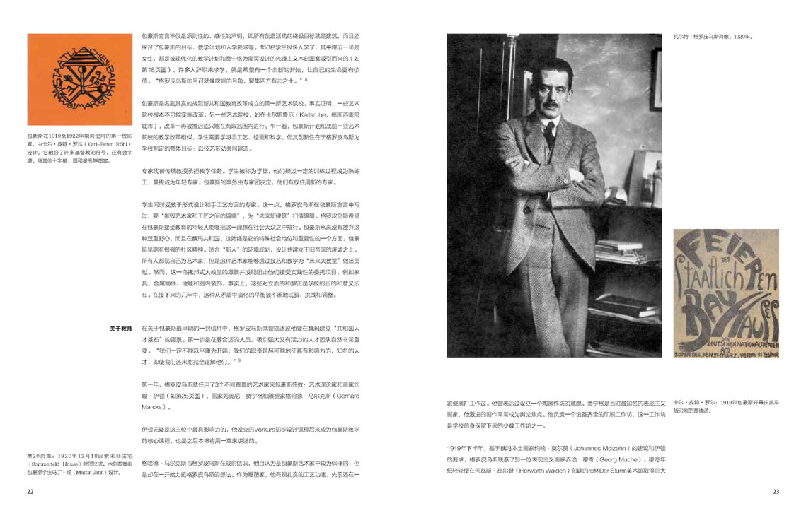 本书的作者玛格达莱娜·德罗斯特已在包豪斯档案馆和包豪斯设计博物馆从事研究多年,作为包豪斯学派的著名学者,其对包豪斯的研究是非常深入、专业的。本书以公正、客观的视角论述了包豪斯发展的历史,从包豪斯的起源、发展、重组至最终解散,向读者简明地介绍了其结构和发展历程,也全面探讨了包豪斯的社会价值以及发展过程中的各种冲突和矛盾。全书内容结构编排非常清晰、系统化,基本与包豪斯发展历程相吻合。