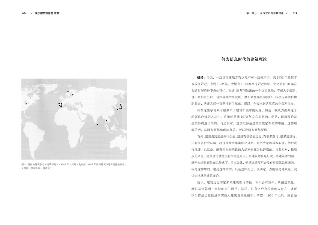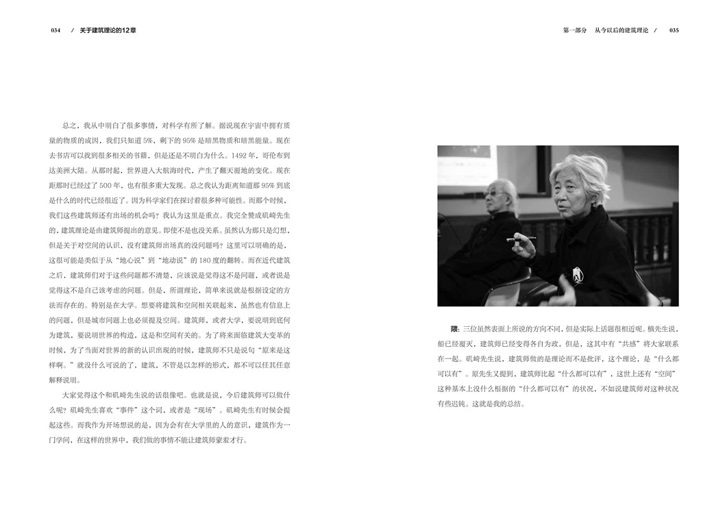本书是由研讨会的研讨内容以及建筑大师们的个人访谈内容组成的。其中包括小渕祐介的《现在还需要建筑理论吗?》、千叶学的《建筑学究竟学什么》、青木淳的《从矶崎新那里继承来的东西,想要斩断的东西》等6篇讨论内容和6篇对建筑大师的访问内容。