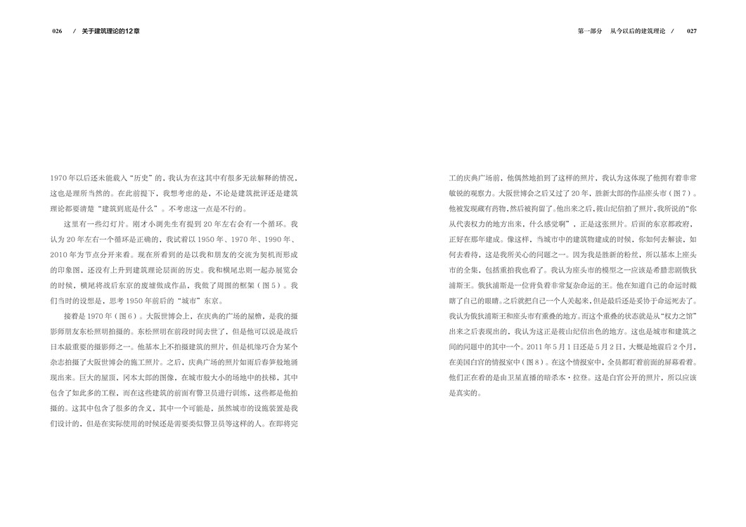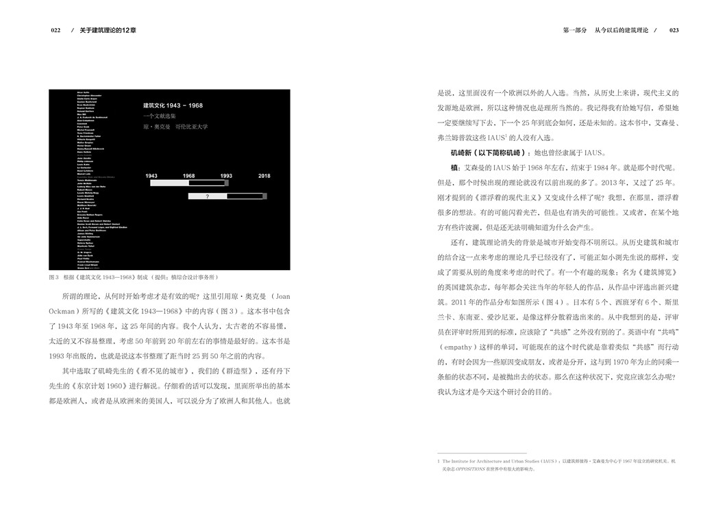 20 世纪90 年代之后,在全世界范围内建筑理论停滞不前,可以用“一片寂静”来形容。东京大学建筑学专业的教授隈研吾、小渕祐介等教授以此为契机,编写了 T_ADS TEXTS 系列书籍,其初衷就是成为建筑理论共有的平台。本书作为这个系列的第一册,由在东京大学召开的有关建筑理论的两个研讨会“从今以后的建筑理论”(2013 年12 月1 日)和“投影与招待”(2013年3 月17 日)以及这两个研讨会的回顾文案,四大部分组成。