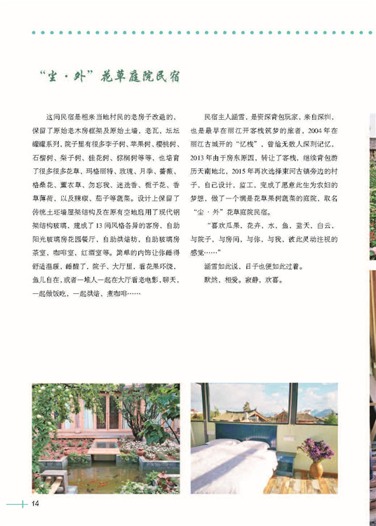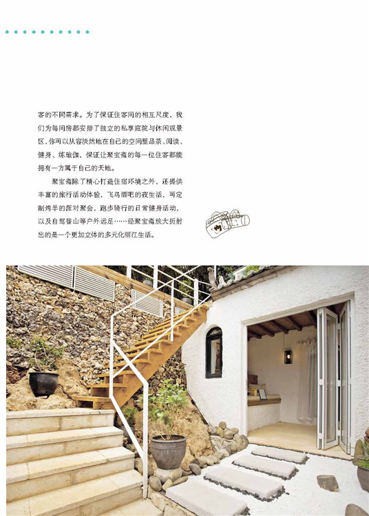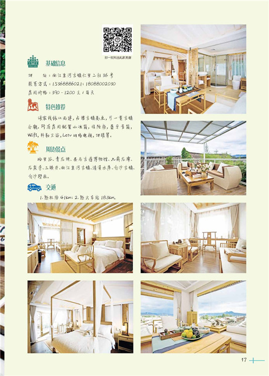 精心甄选35家民宿案例,遍布大江南北,风格迥异,各具特色。每个案例都有介绍民宿老板的个人经历、感受,谈及心中最美的情怀。每个案例中都有路线、周边景点推荐,民宿详细的介绍及价格说明。还有二维码推荐,感兴趣一扫即可了解、预定。