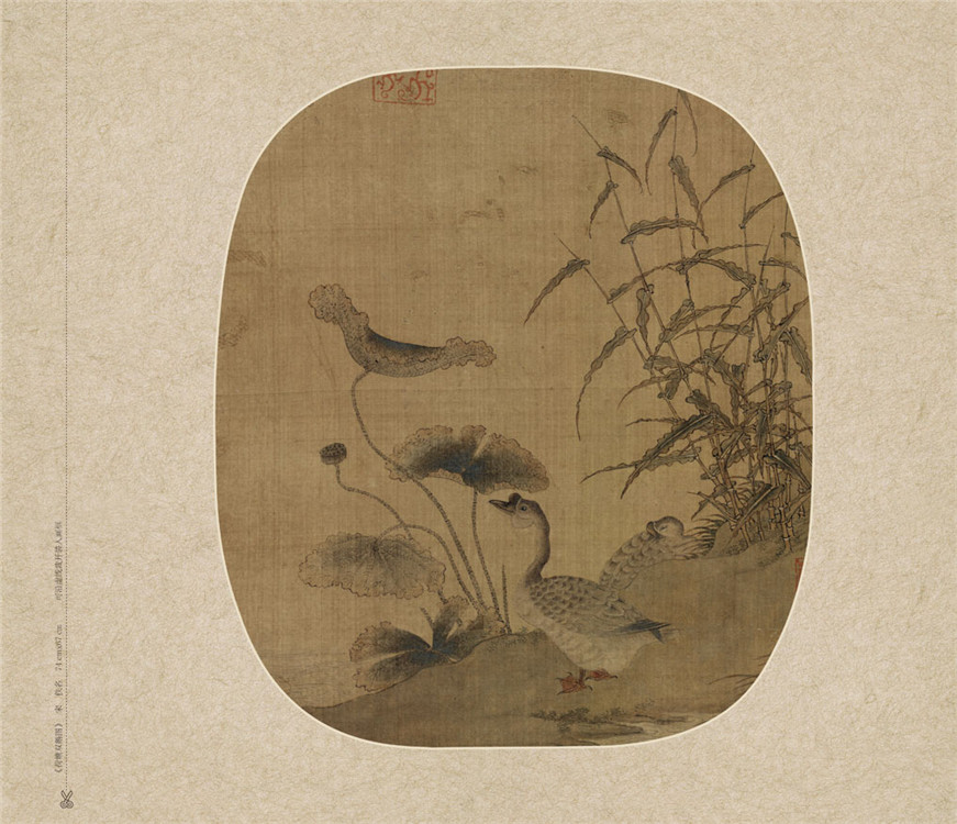 宋代的团扇是宋代院体中发展出来的具有一定实用性、装饰性、雅俗共赏的小幅绘画作品。到了后期,已经不仅仅以实用为目的,而向更具有观赏性、艺术性的装饰品靠拢,为了满足帝王赏阅的需求,团扇经拆裱制成册页形式。实物今天尚能见到,尤其是宋代的绘画作品,保存至今的有相当一部分是画在团扇上的,且不乏出自名家之手。由于年代久远,这种团扇画多为绢本扇页的形式出现。扇面入字入画,使人赏心悦目,给人以美的享受。欣赏扇面书画务须细细品味,慢慢咀嚼其中的艺术意蕴。宋代的团扇画对之后的元、明、清乃至近、现代都有深远的影响,它的意蕴、风格和技艺一直延续着其独特的魅力。时至今日,历经上千年,宋代团扇画也依然能够满足现代人的审美诉求。
