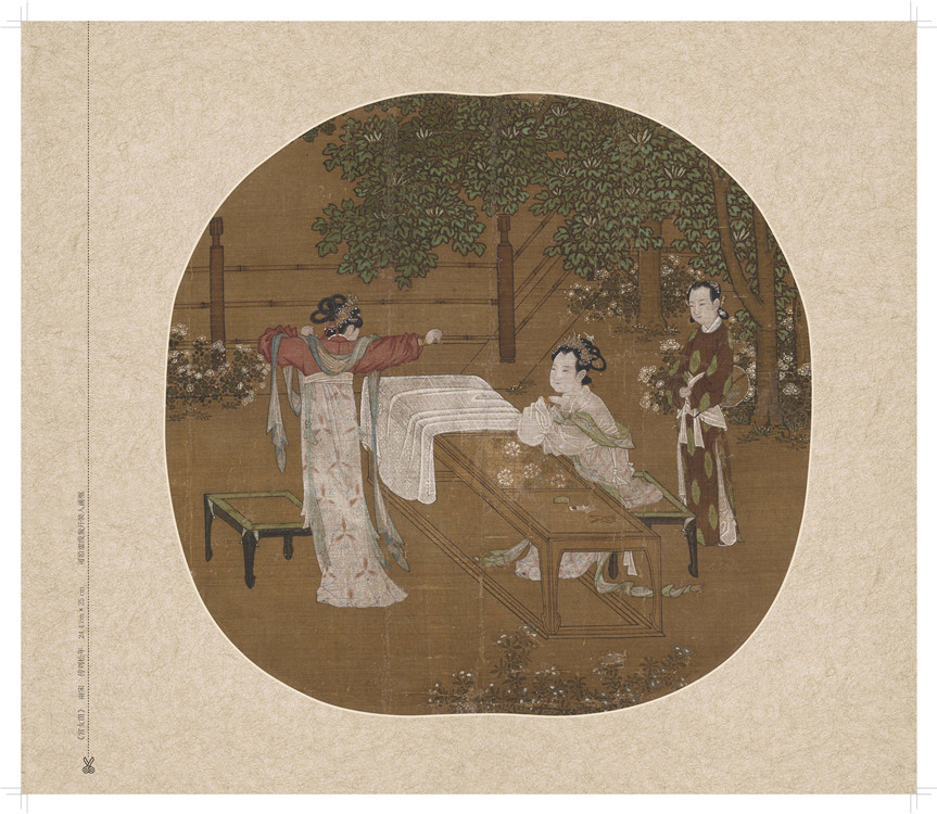 宋代的团扇是宋代院体中发展出来的具有一定实用性、装饰性、雅俗共赏的小幅绘画作品。到了后期,已经不仅仅以实用为目的,而向更具有观赏性、艺术性的装饰品靠拢,为了满足帝王赏阅的需求,团扇经拆裱制成册页形式。实物今天尚能见到,尤其是宋代的绘画作品,保存至今的有相当一部分是画在团扇上的,且不乏出自名家之手。由于年代久远,这种团扇画多为绢本扇页的形式出现。扇面入字入画,使人赏心悦目,给人以美的享受。欣赏扇面书画务须细细品味,慢慢咀嚼其中的艺术意蕴。宋代的团扇画对之后的元、明、清乃至近、现代都有深远的影响,它的意蕴、风格和技艺一直延续着其独特的魅力。时至今日,历经上千年,宋代团扇画也依然能够满足现代人的审美诉求。