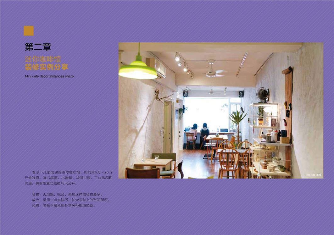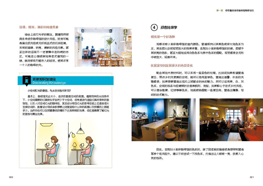 开一间咖啡馆,是美梦好事恶梦?想知道设计如何影响生意吗?咖啡馆可不是自己随便装修一下、摆上桌子就坐等收钱了,其中暗藏了许多商业空间的专业知识,本书结合实际案例,从“风格形象学”“灯光气氛学”“颜色抢眼学”“桌椅经济学”“靠窗造景学”等众多方面,系统性教大家如何完整的包装自己的咖啡馆。