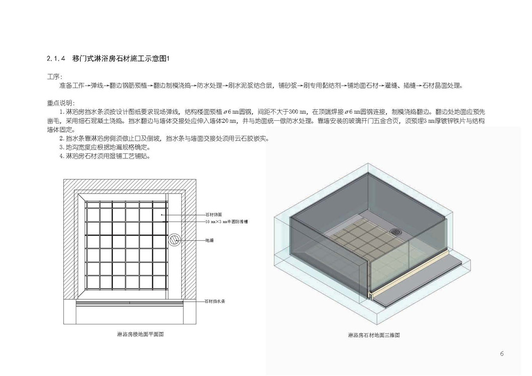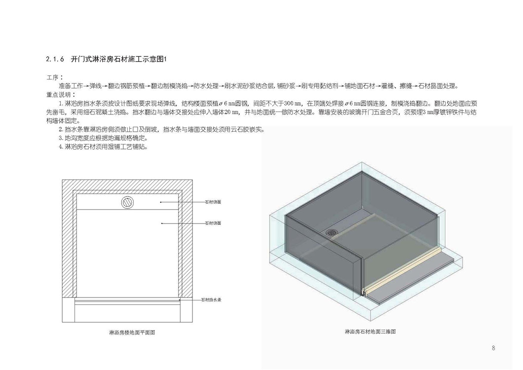 2.1.6 开门式淋浴房石材施工示意图1