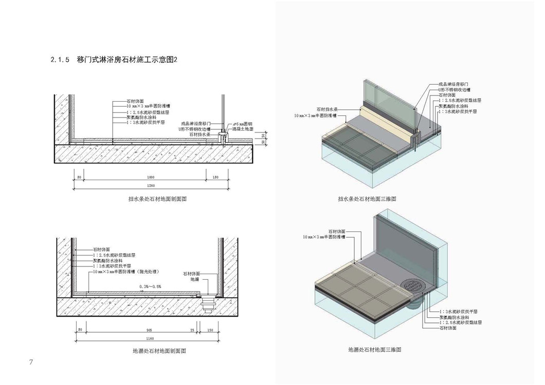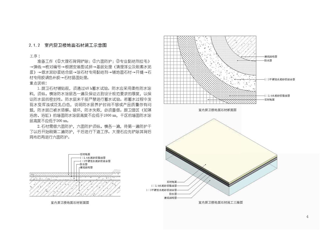 2.1.2 室内厨卫楼地面石材施工示意图
