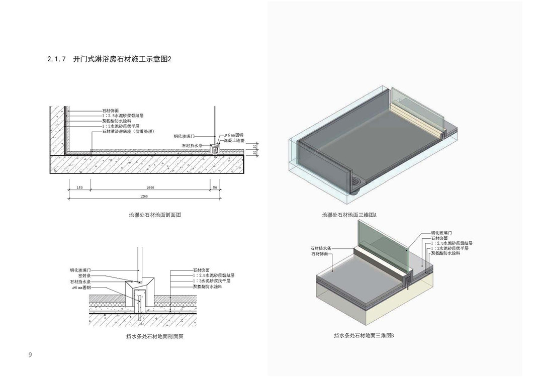 2.1.7 开门式淋浴房石材施工示意图2