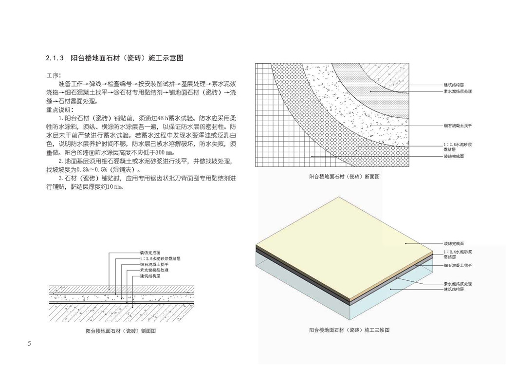 2.1.3 阳台楼地面石材(瓷砖)施工示意图