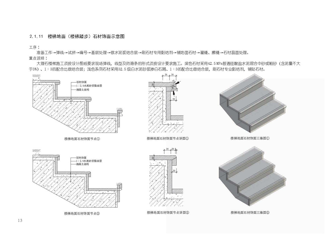 2.1.11 楼梯地面(楼梯踏步)石材饰面示意图