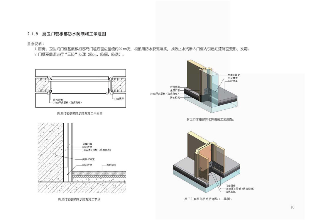 2.1.8 厨卫门套根部防水防潮施工示意图