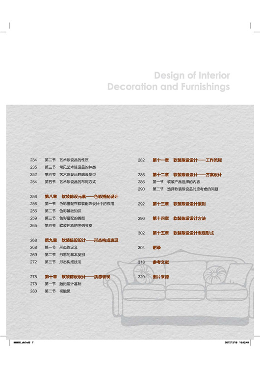 为了将风格设计以更加系统的方式呈现给读者,本章下面将分为两个部分进行阐述,即“软装陈设设计风格解析”和“当代软装配饰风格的分类与特点”。“软装陈设设计风格解析”主要介绍中西方室内陈设设计的成因及特点,以及家具、织物、灯饰、画品、花品及其他陈设的发展概况。“当代软装配饰风格的分类与特点”结合当代软装配饰设计的特点及产品资源,深入解析较有代表性的装饰风格,如欧式风格、新中式风格、东南亚风格、现代简约风格等。综上,读者可了解中西方室内陈设设计的历史起源以及当代软装配饰设计风格的基本概况。
