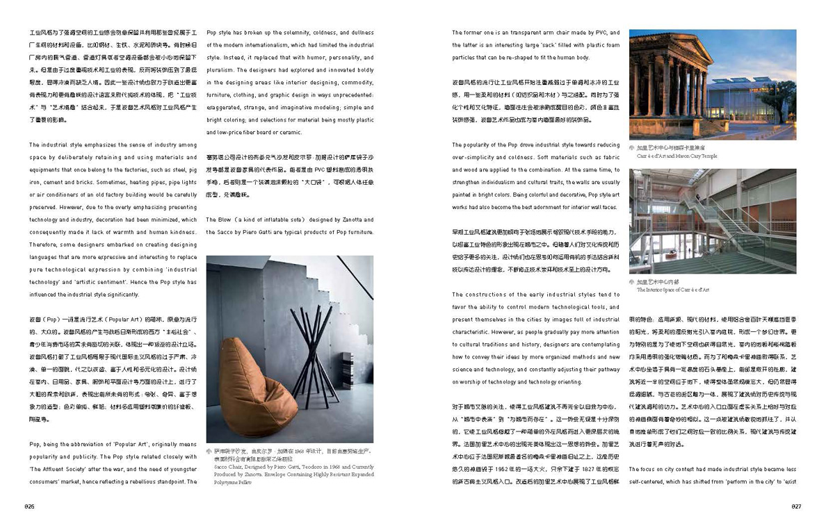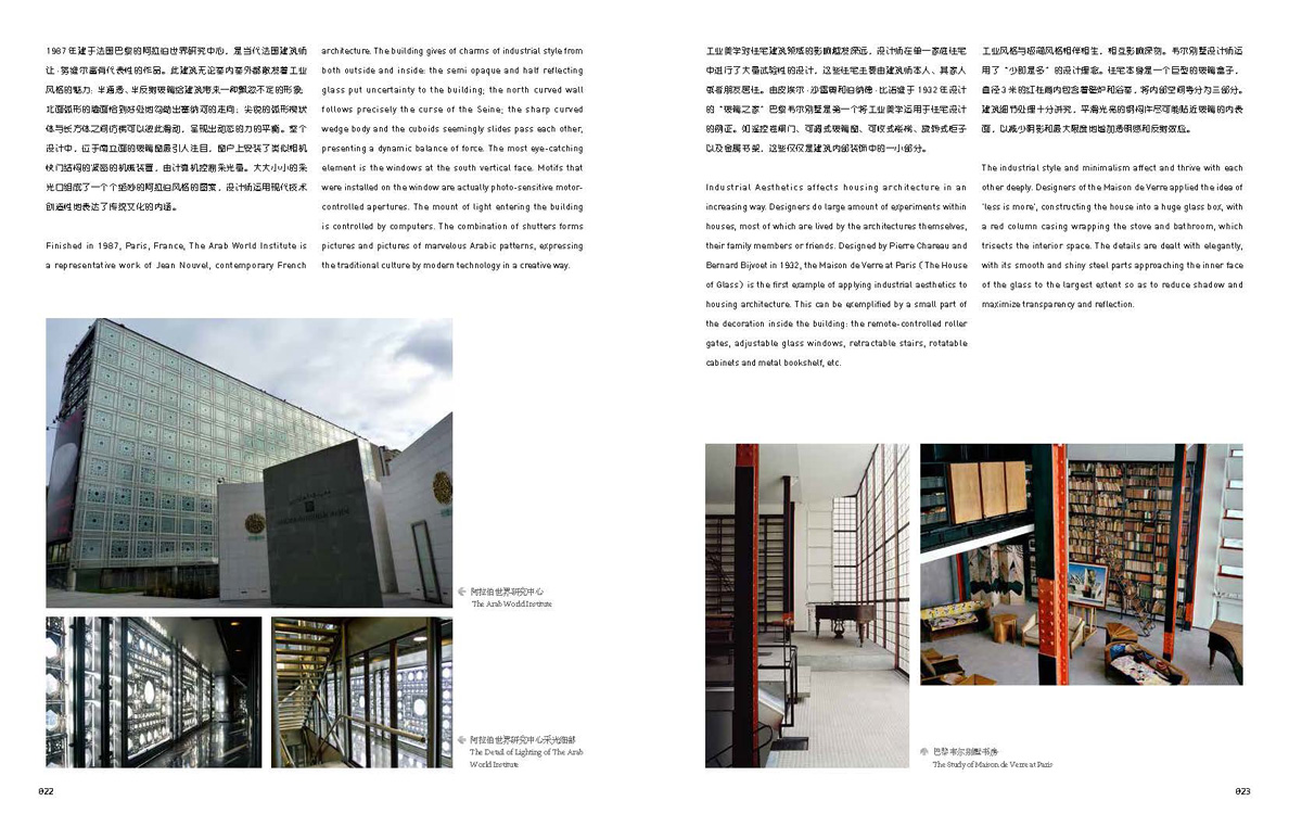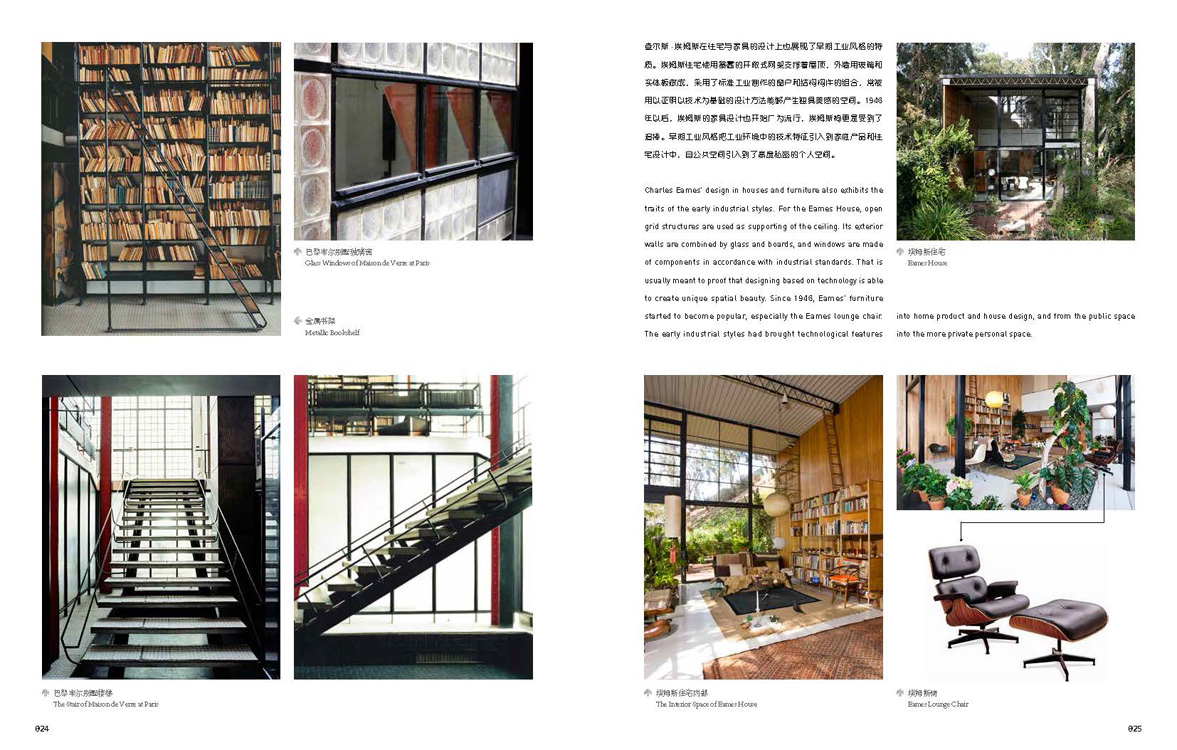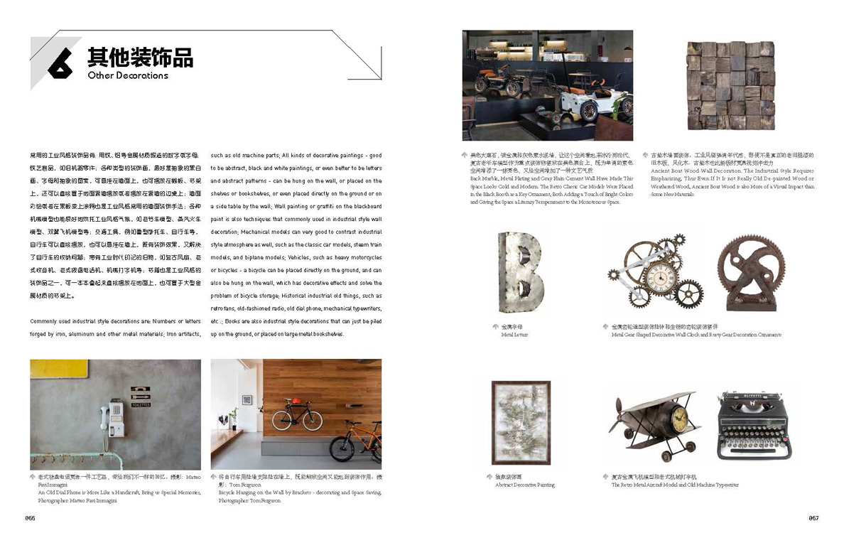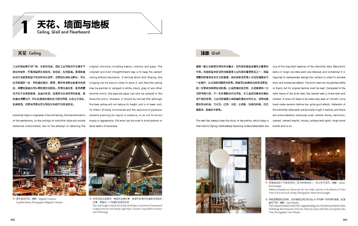 了解了工业风格的发展轨迹之后,也就不难理解工业风格元素的直白以及强烈的质感。在第二章,可以从细节元素的分类讲解中,更深入地了解到带有工业风格烙印的室内装饰物、家具、布艺等,材质与色彩的多种组合方式,也会塑造出室内变化多样的工业风。尤其是后半部分大量的实景案例的集中呈现,会将这种感受变得直观化,相信会给读者朋友们开拓更广的视野和思路。