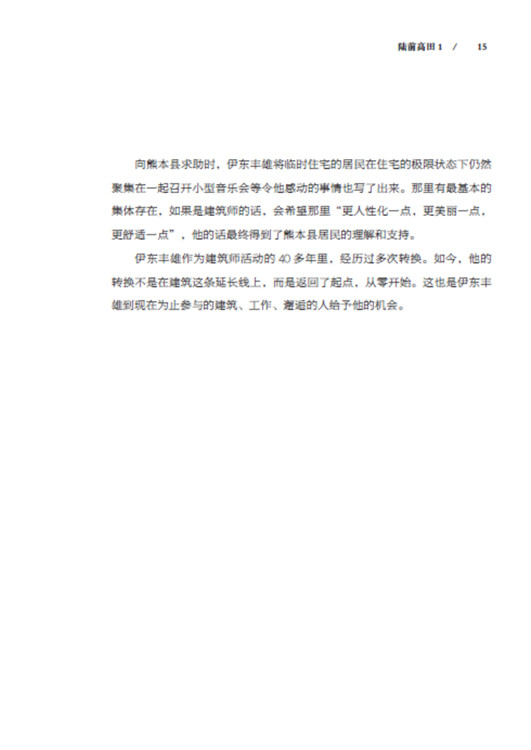 通过本书不仅能了解到建筑大师伊东丰雄的建筑从业心路历程,还能了解到作为“永恒建筑的缔造者”的伊东丰雄,对自身的自我要求。