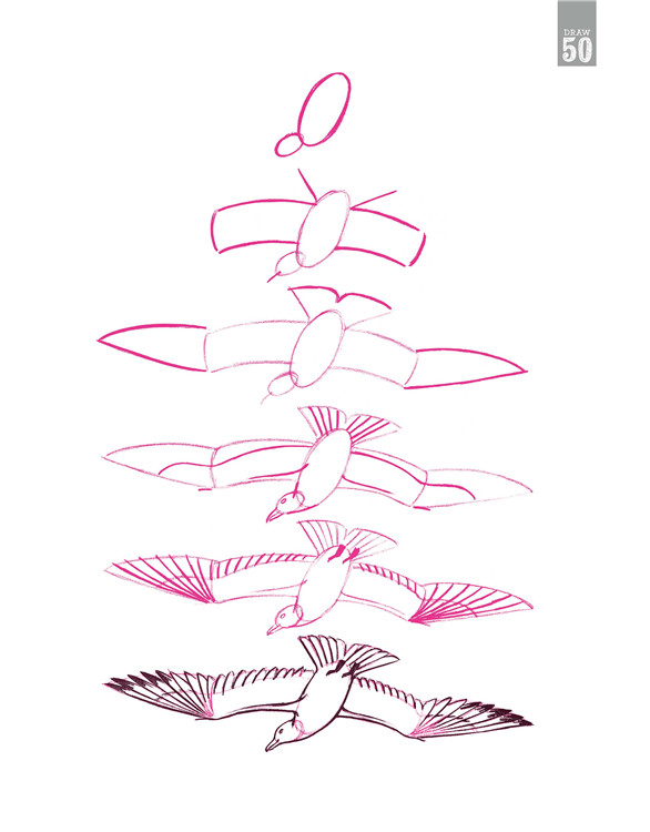 在勾画每一步时,都要注意每两根线条之间的空隙和线条本身。在每一步后,可以用橡皮擦淡之前的线条。当你完成时,可以使用笔刷或钢笔加深最终画作的线条,当墨水干燥后,用橡皮擦掉铅笔线条,不会影响墨水线条。