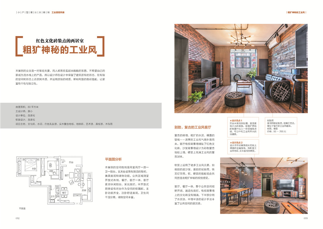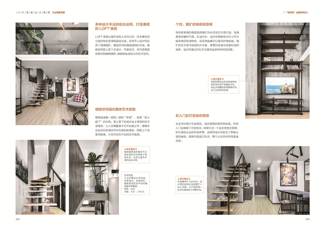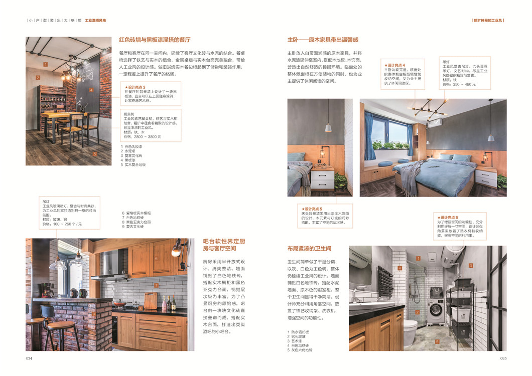 本书是一本实用型小户型家装参考书,精选国内一线设计工作室的21个优秀的工业混搭风格的实景案例,每套案例一个主题,并配有户型图解析和设计理念介绍。编者从室内设计的专业角度分析了小户型的装修特点,并从软装、色彩、材料、住宅的功能分区、收纳储物等角度全面讲解了在小户型装修过程是怎样合理规划空间布局和从视觉、功能使用上增大空间面积。全书案例详细说明了所用的主要装修材料和设计要点,全方位讲解工业混搭风格的装修理念,并对案例中出现的工业风单品做以简单介绍,实用性非常强。
