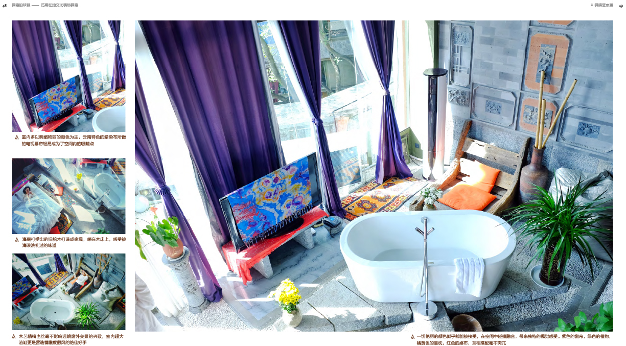 书后附有详细的民宿软装基础知识,包含:民宿色彩设计基础教程;民宿家具教程;民宿卫浴设计教程;民宿特色艺术陈设(镜子、工艺品、装饰花艺、空间香氛等)教程;还附有旅游民宿基本要求与评价标准。
