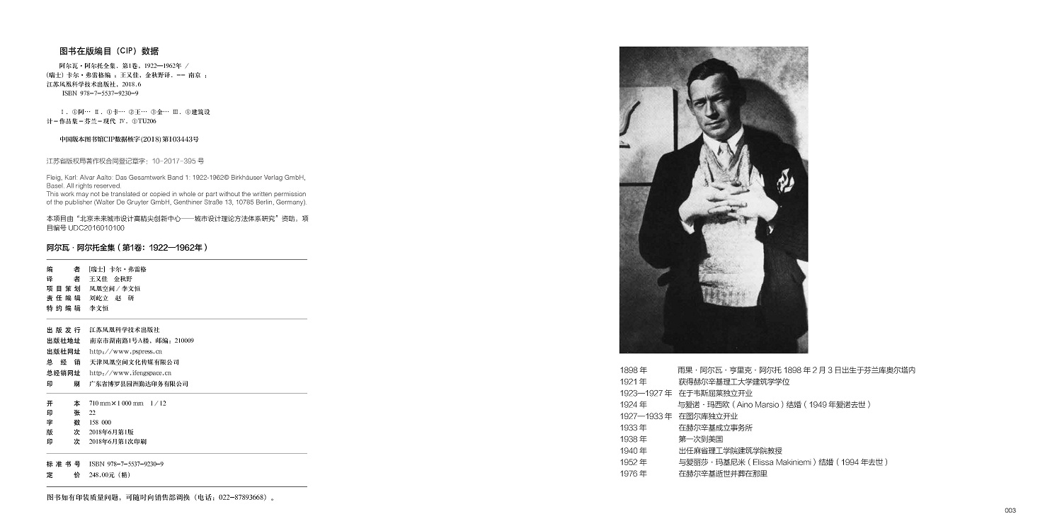 本卷外文原版出版于1963年,是这位大师作品集的第1卷,收录从1922—1962年的建筑设计与规划案例,从1929年建成位于图尔库的芬兰剧院,到1962年的新赫尔辛基城市中心方案,通过280余张照片,近200张设计图纸和草图,按时间顺序为读者展示。本书并没有将阿尔托的建筑设计归类于某种风格或流派,也没有对他的作品小题大做,只是将他的建筑设计忠实、客观、简要地展示与陈述给读者。