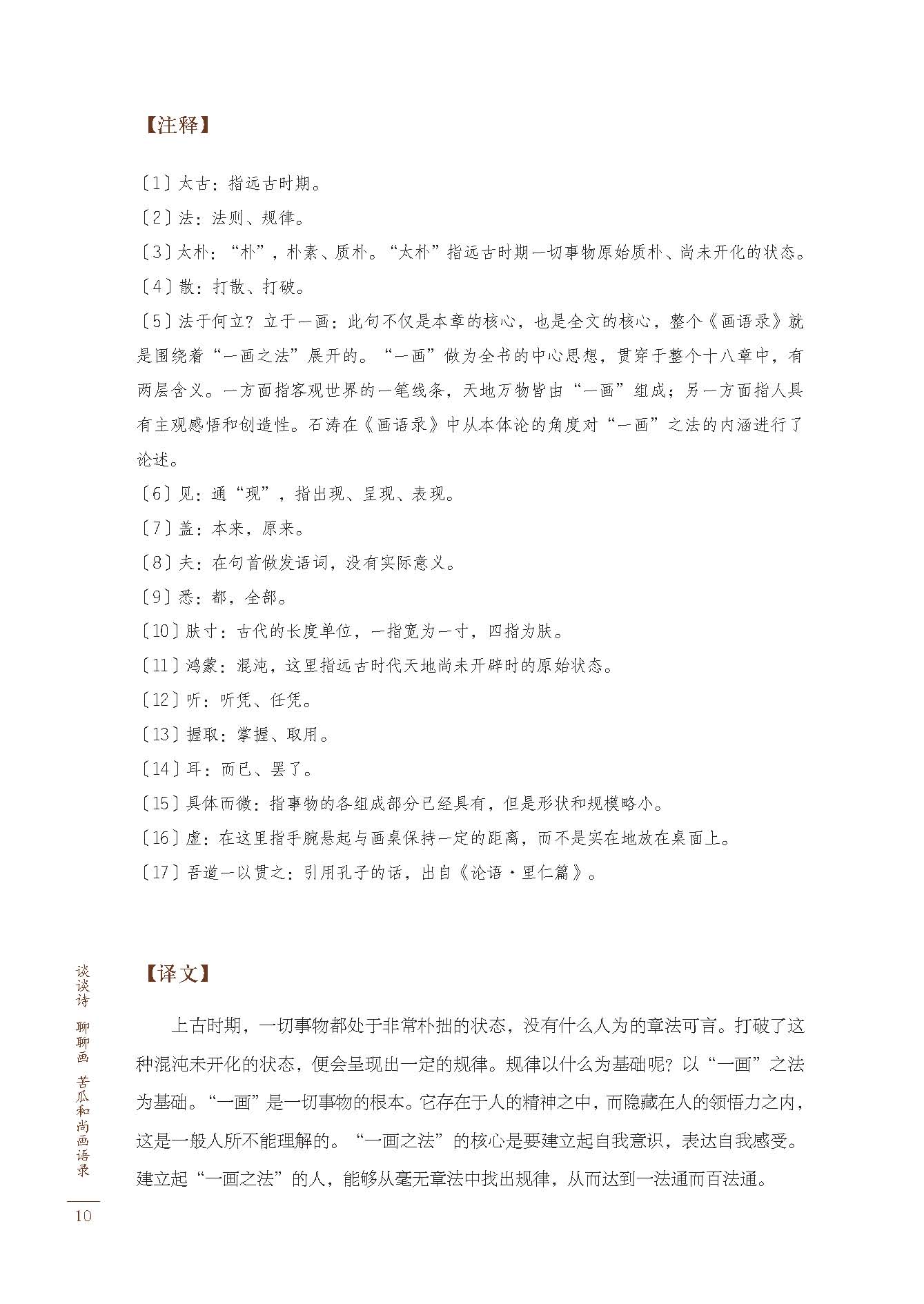 在保证原典准确的基础上,我们重新加入译文,力追古文意境。同时在每一章之后加入拓展阅读,陪你一起走过石涛生活年代的点点滴滴。