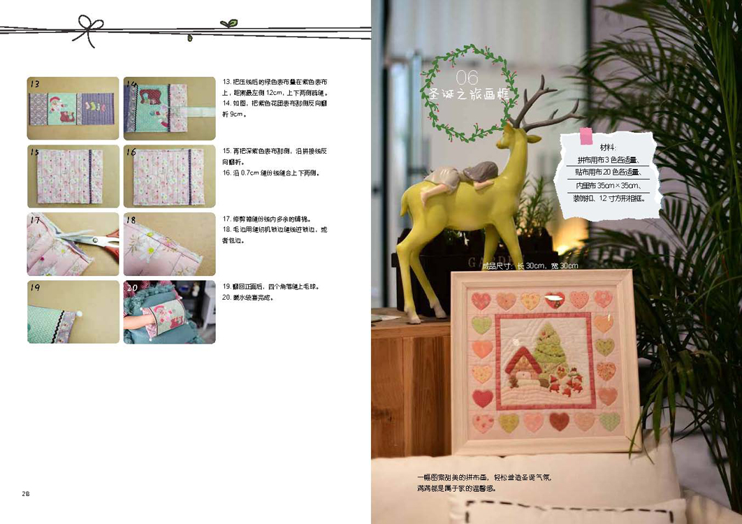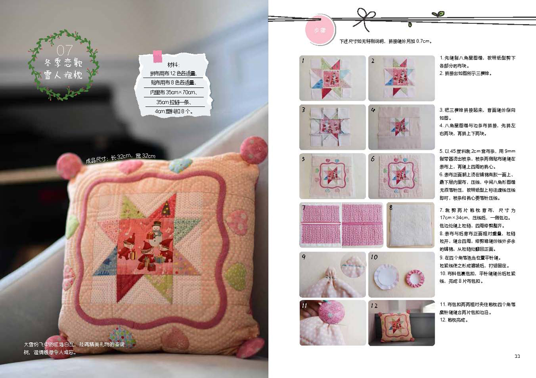 本书是一本详细讲解拼布技巧和拼布作品制作过程的的图书,无论是白领、文艺青年还是全职家庭主妇,也无论有没有缝纫经验,只要热爱手工、跟着作者的技法步骤一步步实践,都能动手尝试拼布,做出精致可爱的拼布作品。不需要沉重昂贵的工具和太长时间,也没有太繁琐的步骤,只需要用随手就能得到的边角布料,发挥自己天马行空的想象力,以及一点坚持、一点耐心。生活中每一个惊喜、每一段珍贵的回忆,都可以用拼布记录下来。在午后的温暖阳光下,拿起针线,时间在裁剪、手缝的过程之中悠然流淌。