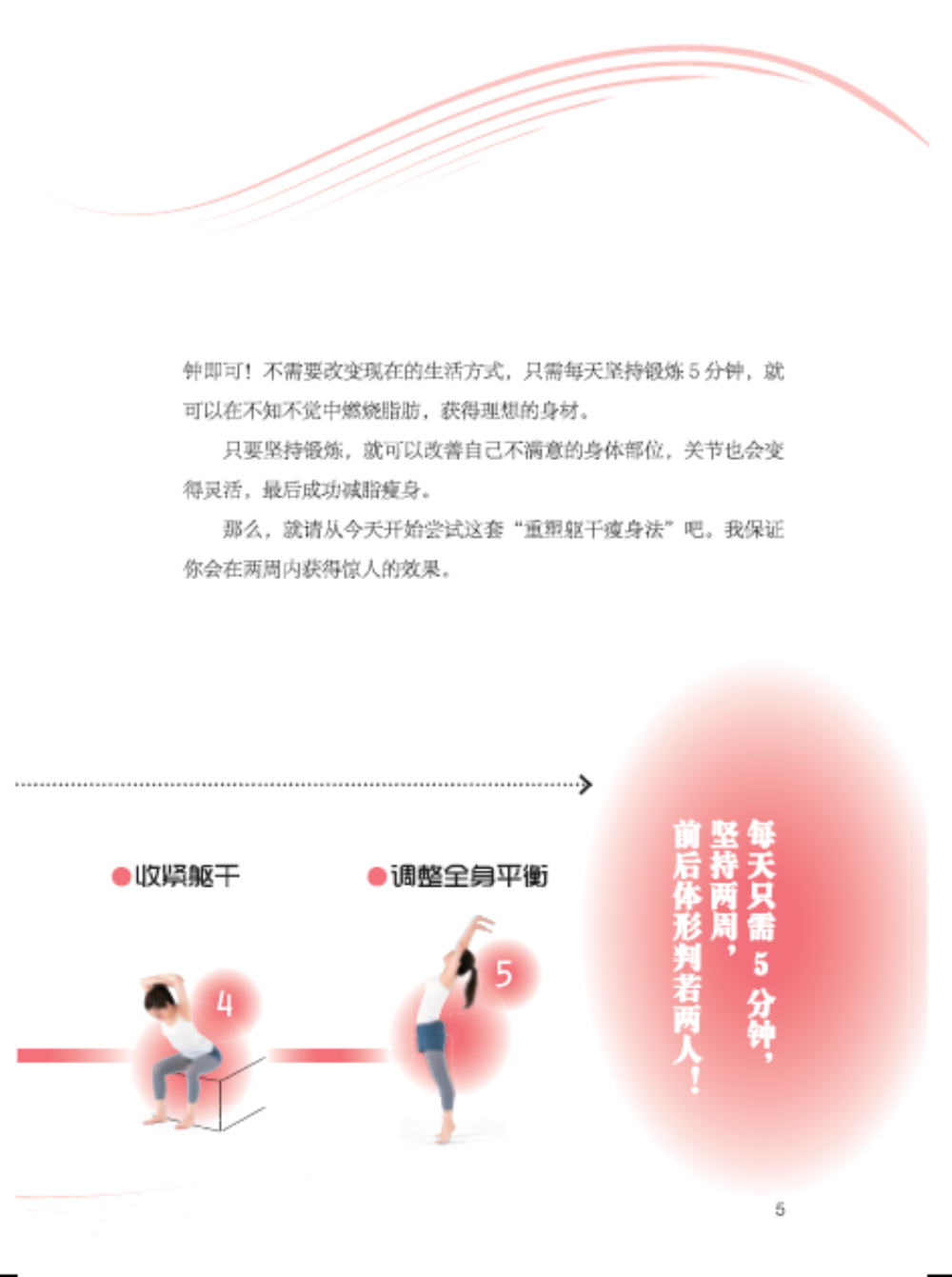 当你看完这本精巧可爱的小书,相信你就不会再将瘦身塑形想象为“洪水猛兽”而不敢付诸行动了,每天5分钟,5个动作,坚持两周相信你会看到明显变化。