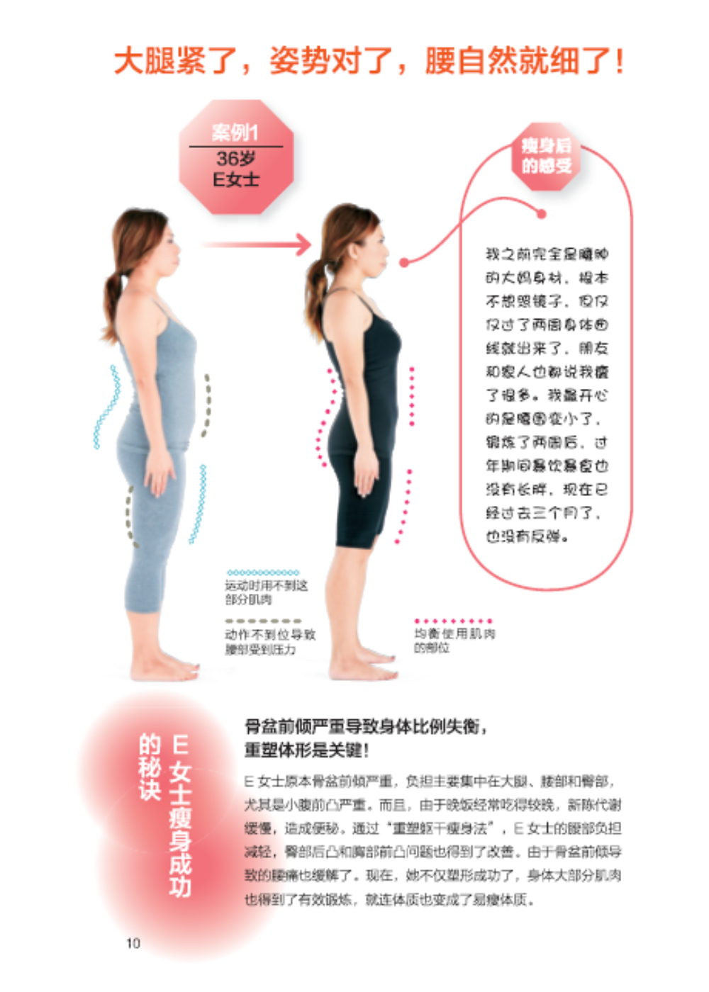 ★骨盆前倾、小腹前凸、小腹赘肉、蝴蝶袖等瘦身难题逐一突破,两周即有明显变化,即使停止练习,也不反弹。