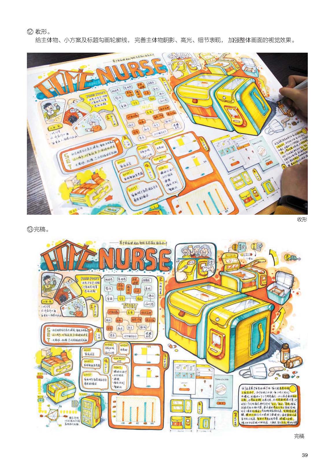 传统手绘范例书籍结构,结合“设计考研高分攻略”的设计思维导向特点,以更有针对性的