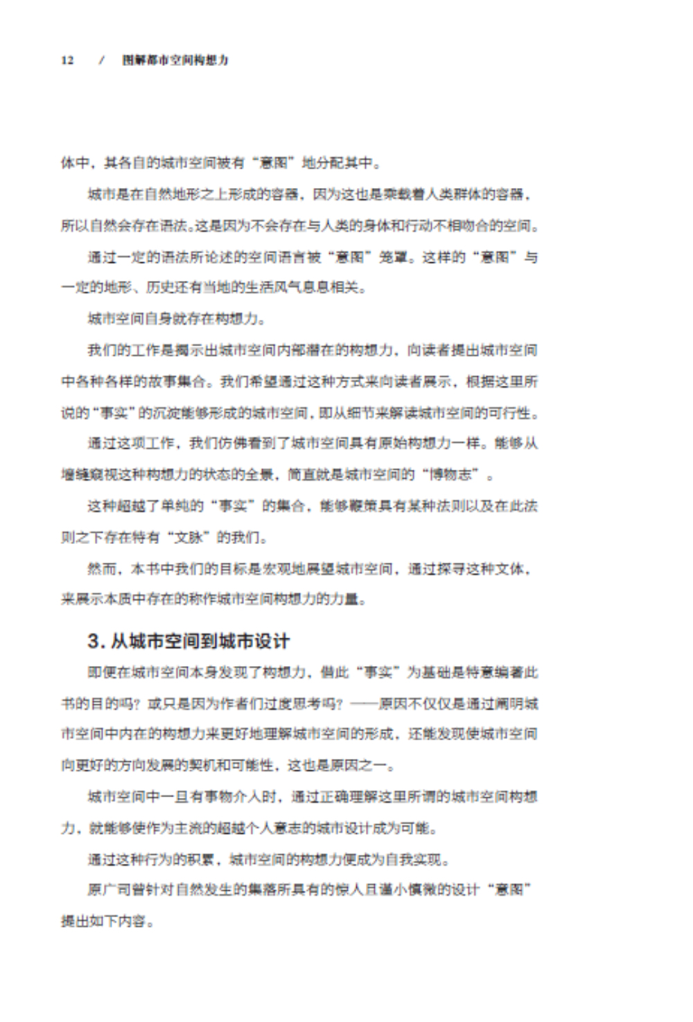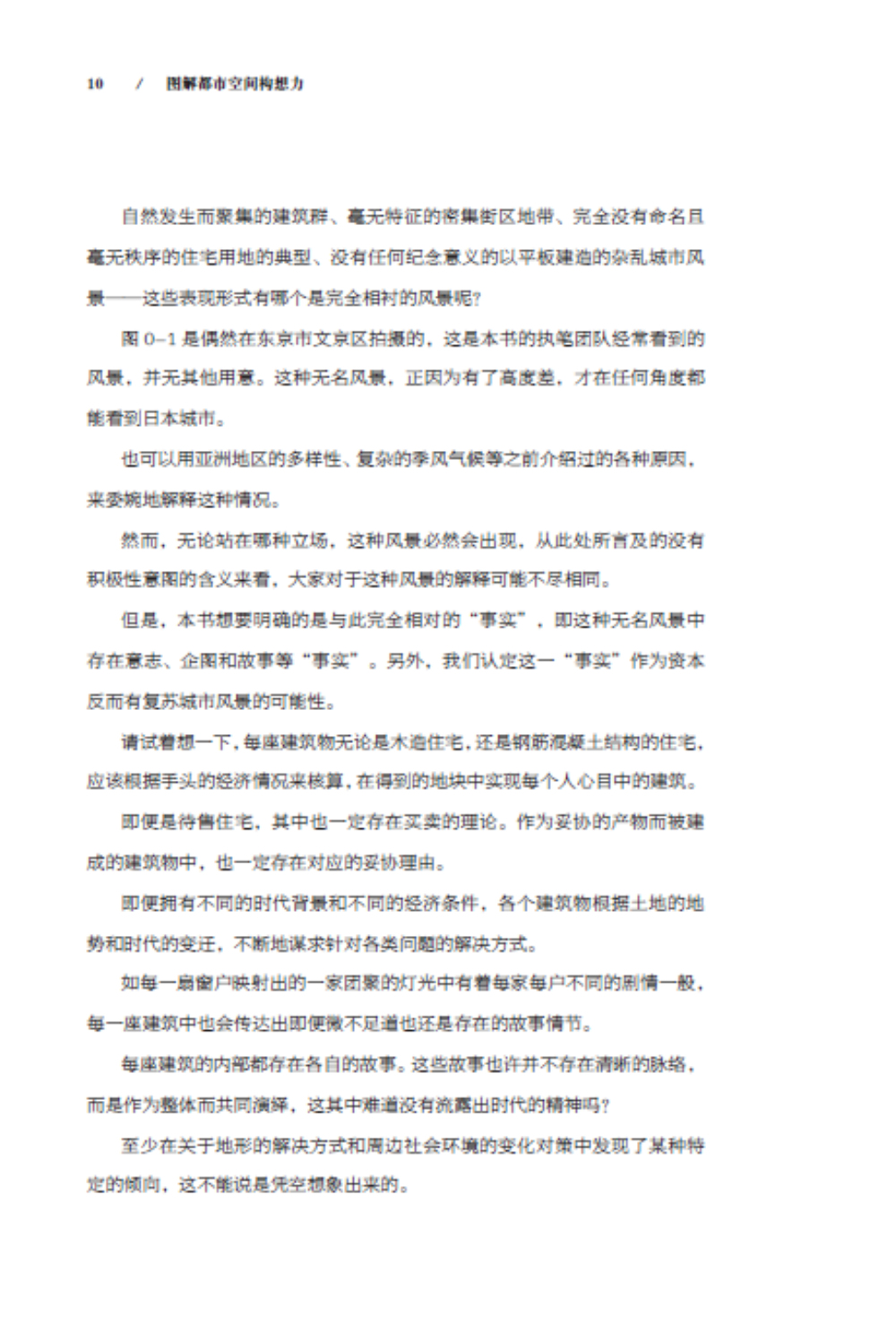 无论在看似多么杂乱无章的城市空间中,其场所都存在固有的空间语法。随着大部分人在与城市发生关联的过程当中,解读这种语法只会变得更困难。如果更加深入探索城市空间的话,还会发现其中存在通过这种语法去表现的、应该被称作空间“意图”的诸多事物。通过解读城市空间具备的这种构想力,能够预判今后城市的样貌。