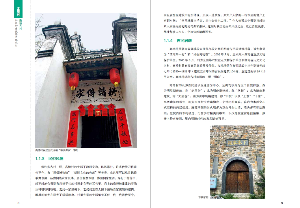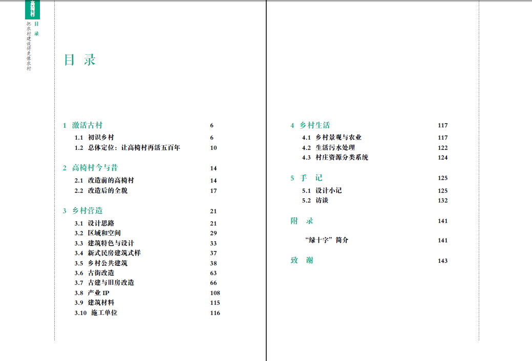 本书展示了设计师如何让发展和保护并行,将有着“中国十大古村落之一”称号的湖南侗族村落高椅村建造成为新旧建筑并存的美丽村庄。书中详细地解答了保护与激活之间存在的矛盾与问题,并通过实际案例分析设计师与村民之间的互助关系,此项目凝聚了清华大学、中央美术学院、中国民族大学等高校师生的智慧,集结了湖南农道、湖南如一设计、农创投资等公司的心血,众志成城,让高椅再活五百年。