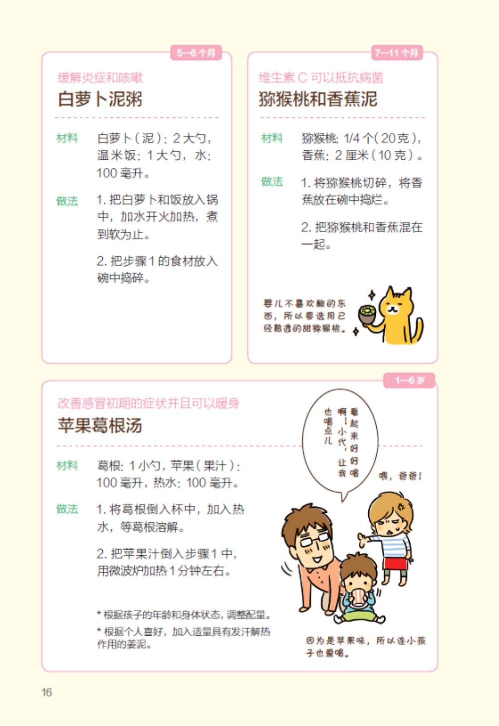 感冒、中暑、提高免疫力、头疼、虫牙、宿醉、晕车、花粉症等60种家庭常见病解决方案一应俱全,苹果酸奶、奶昔、胡萝卜粥等130道简单易做美味食疗菜谱,一本小书让父母成为宝宝的家庭医生。