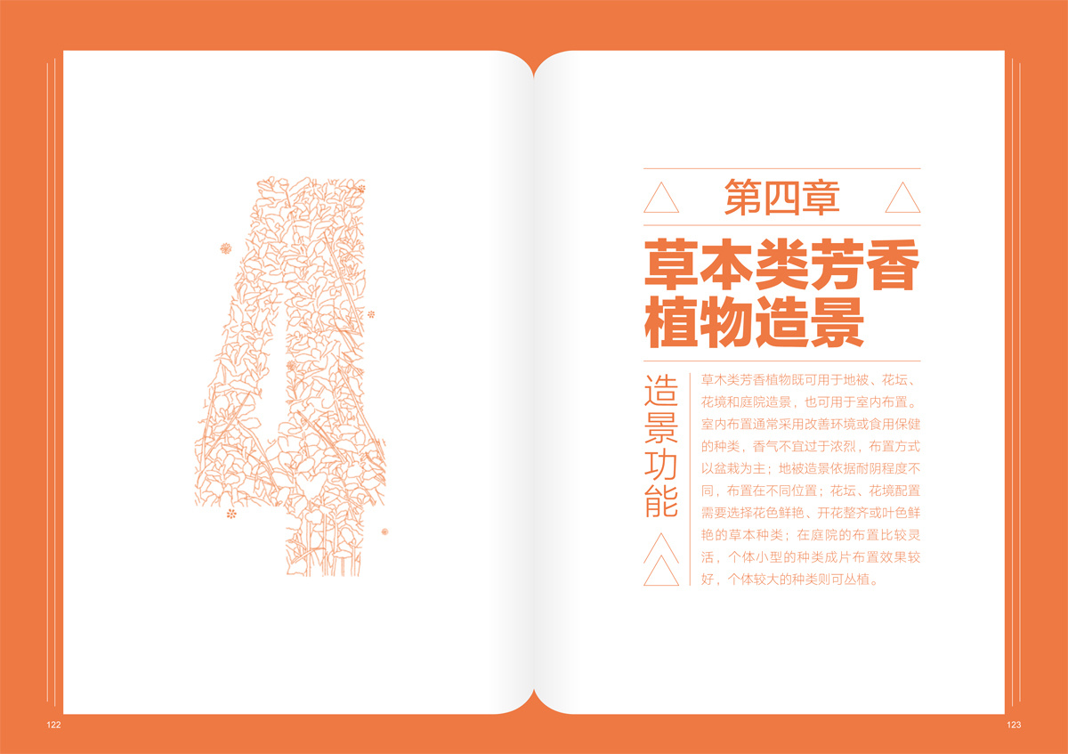 《芳香植物景观》按植物的特性和景观功能分类,分为灌木类芳香植物造景、乔木类芳香植物造景、草本类芳香植物造景、藤本类芳香植物造景,方便园林从业人员在实际应用中参考借鉴。
