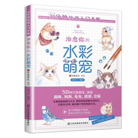 本书是入门级水彩画动物的技法教程,一共有3大部分,包含50个代表案例,从水彩工具的具体介绍和实际运用,到轻松掌握水彩绘画中的七个小技巧,由浅入深一站式掌握,50款案例步骤详尽,从调色到技巧,手把手教你水彩绘制方法,让没有绘画基础的小白也可以在30分钟内,轻松画出猫咪、狗狗、兔兔、猪猪、仓鼠等治愈的水彩萌宠,可爱的画风、灵动的色彩,将我们日常看到可爱小动物带来的治愈感受,全然体现在画纸上。