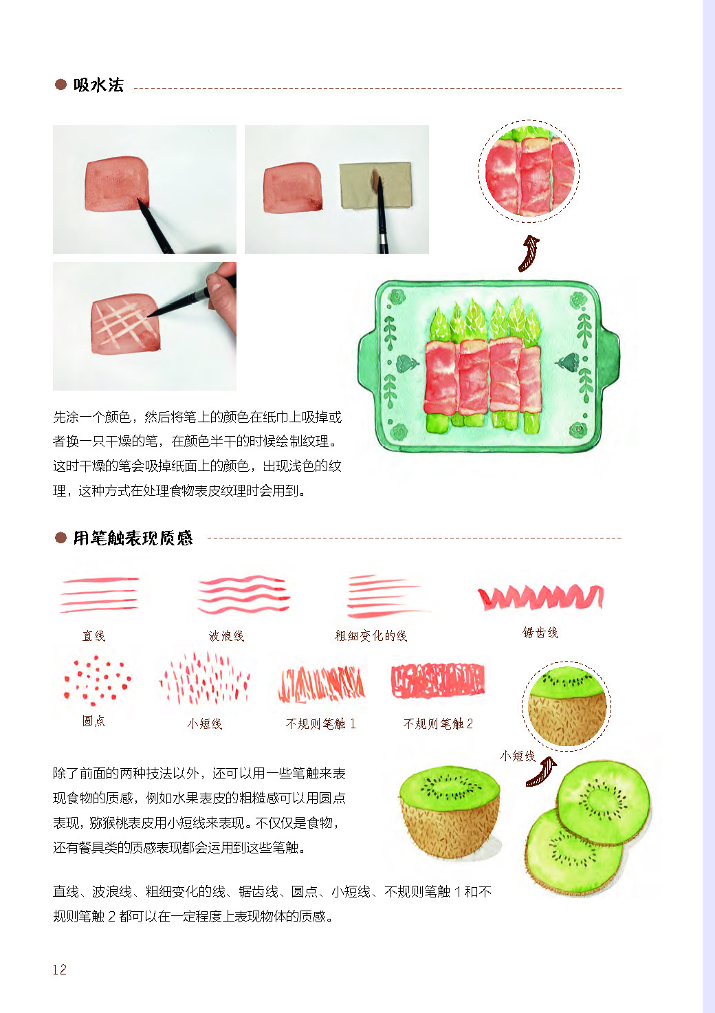 1.水彩画是一种特殊的艺术形式,本书作者以美食作为切入点,分享了水彩画中画美食的颜色、布局、质感以及工具和基本技法的学习,图解直观,简单易懂。