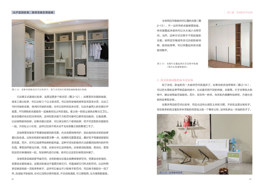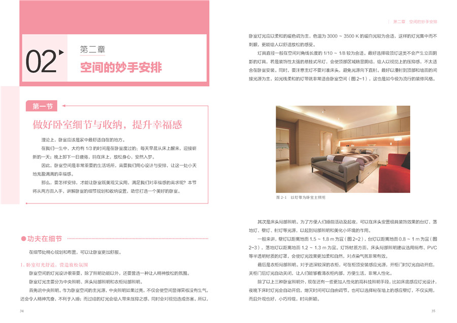 本书分为四部分:第一章为“装修时要做好的功课”,主要讲装修时有哪些地方需要注意,着重于细节;第二章为“空间的妙手安排”,从卧室、客厅、玄关、厨房、卫生间、阳台等分区入手,分别讲解各功能区的一些装修要点和建议;第三章为“懂一点配色和风格,提升家的品味”,主要从风格和配色入手,讲解各种风格的注意事项;第四章为“要住得舒适,从器具下功夫”,主要讲述有哪些实用好看的家具、部件,以及个别家具有哪些地方不尽如人意,需要谨慎购买。