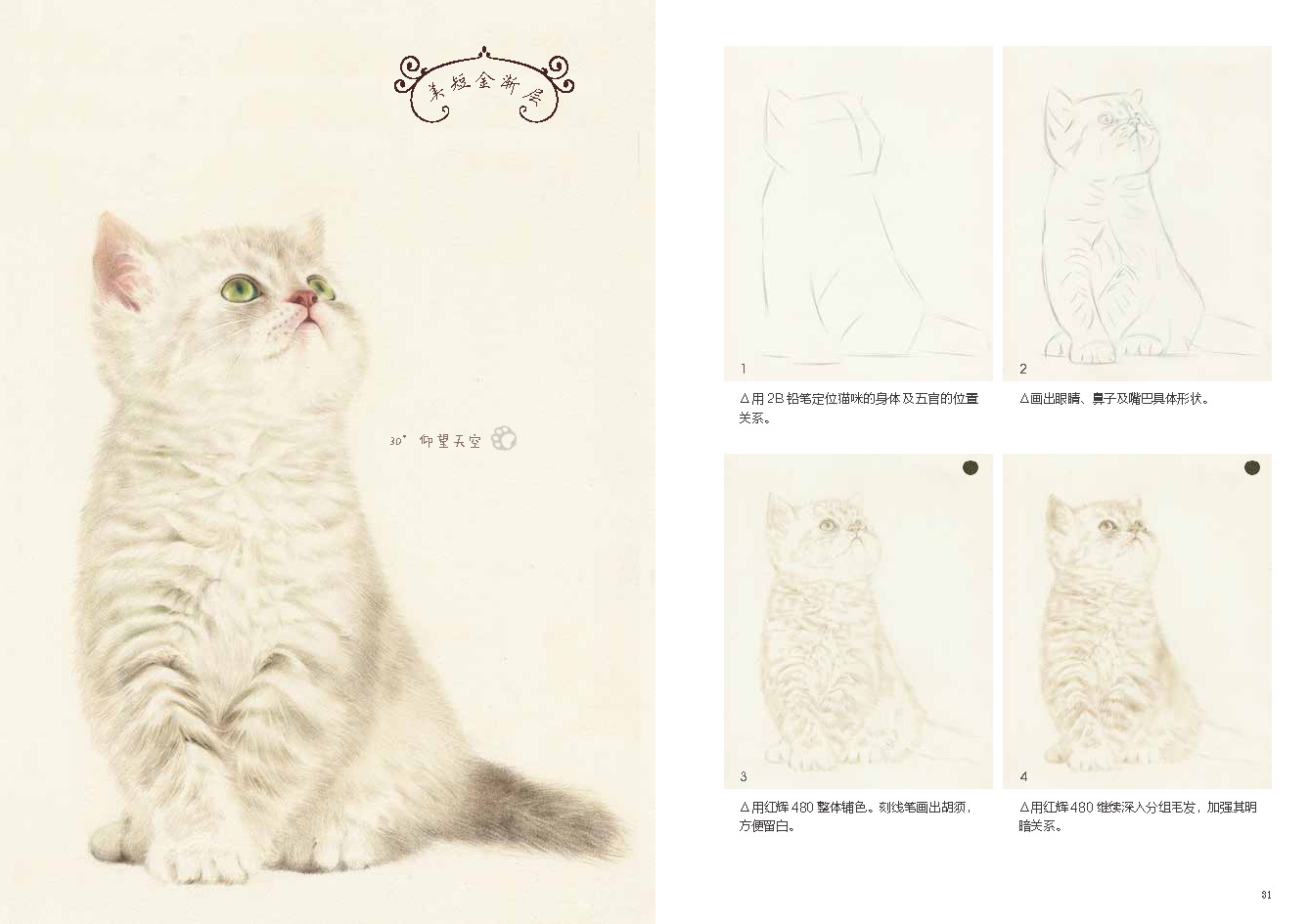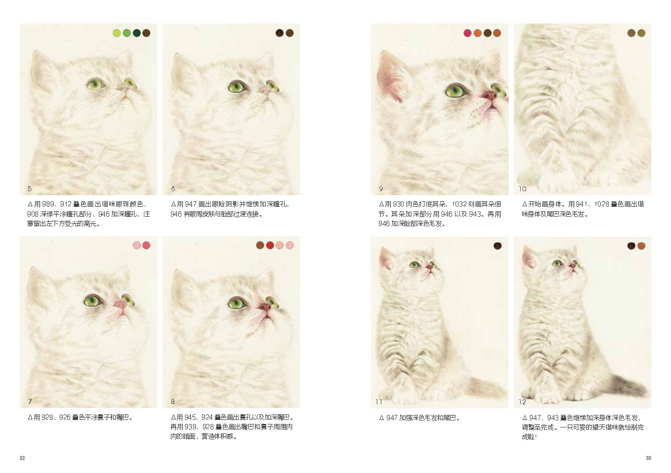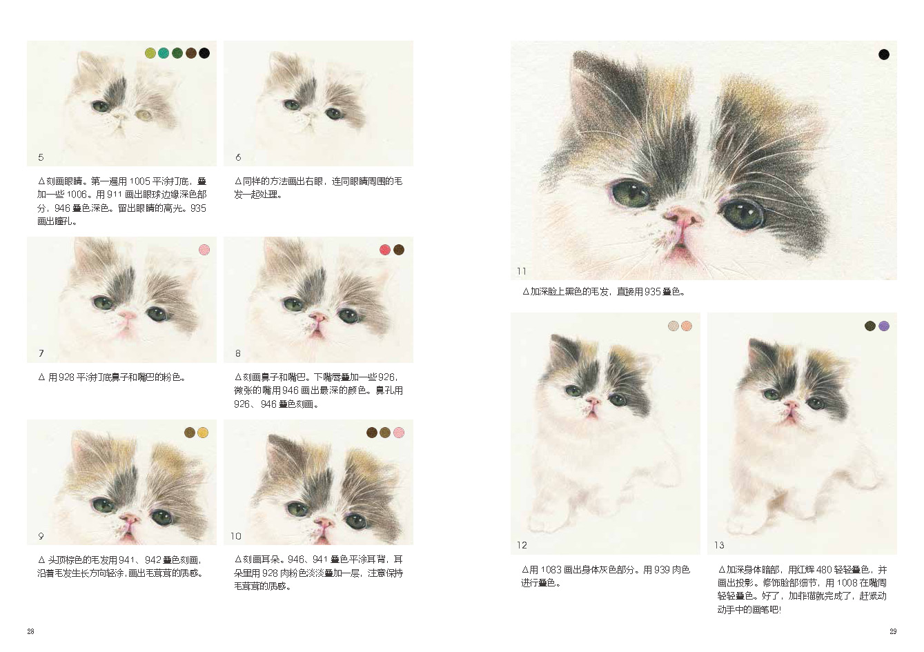 3.步骤详尽,讲解清晰,更有猫狗彩铅技法的特征总结和技巧分享。