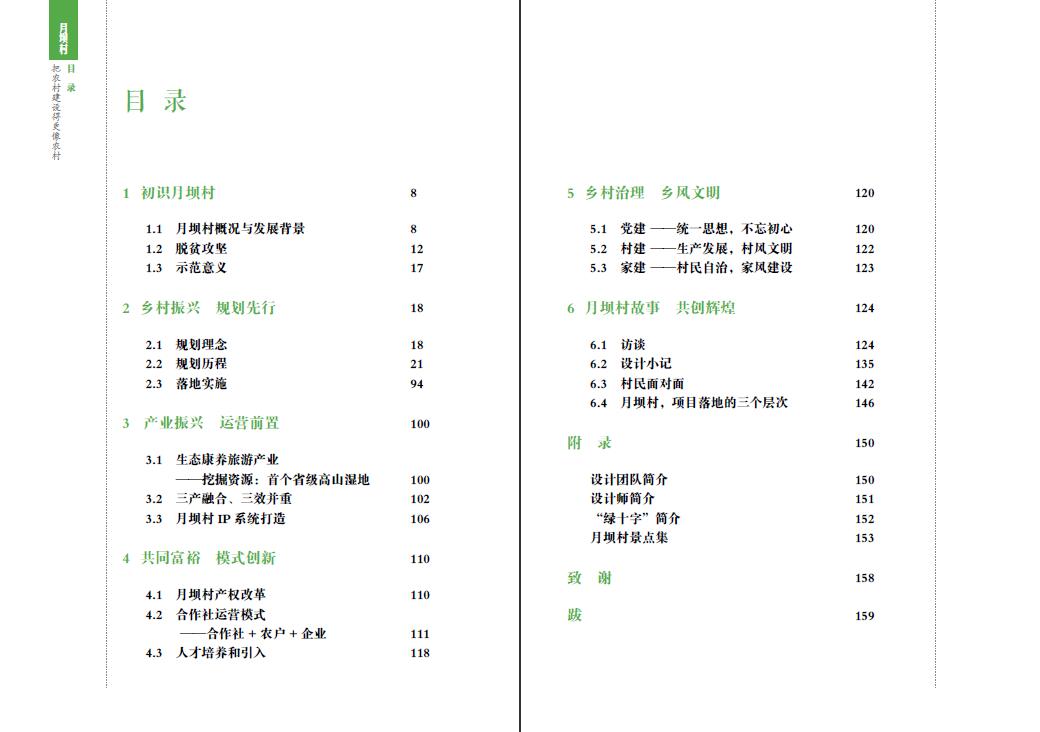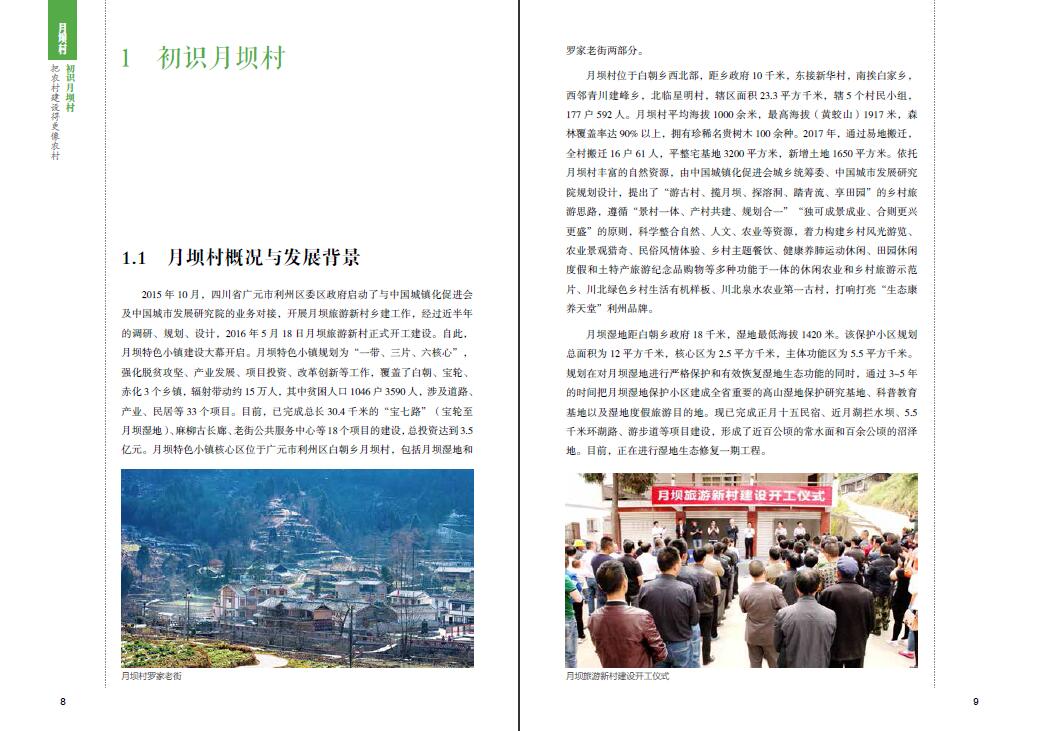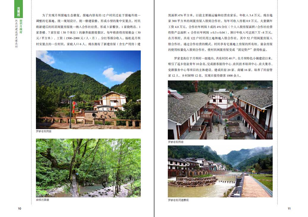 《把农村建设得更像农村 月坝村》选取四川省广元市月坝村项目为代表,该村拥有“小西藏”的美誉,其月坝湿地为四川省首个高山湿地保护区。本书主要从规划角度讲述了月坝村如何从名不见经传的山村发展成四川省乡村振兴示范村的华丽转变。在软件运营方面,月坝村采用“合作社+农户+企业”的形式,带动全村集体致富。月坝村先后荣获“中国十大乡建探索奖”“全省百强名村”“四川十佳生态宜居村”等荣誉。月坝村所积累的美丽乡村建设经验可为读者提供参考和借鉴。