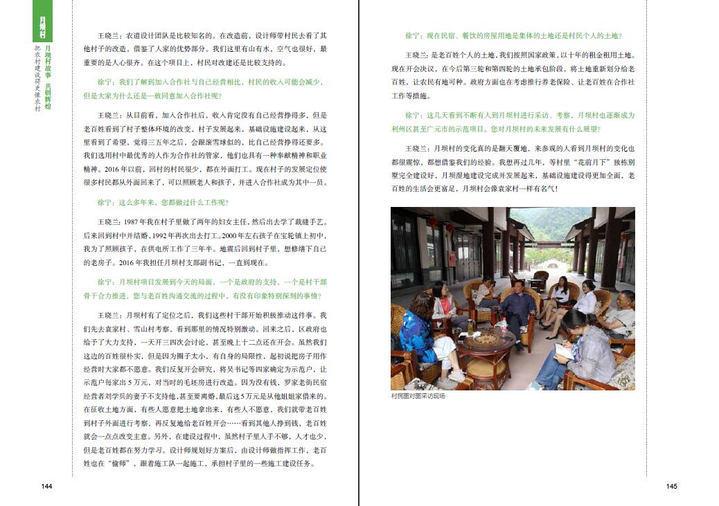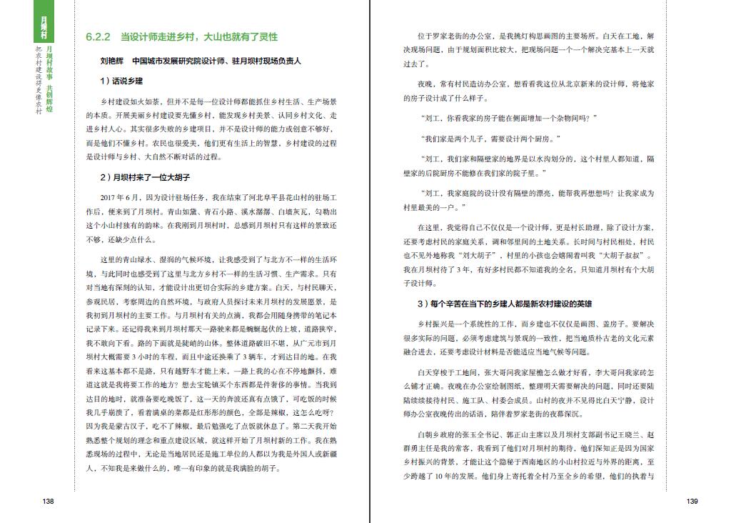 《把农村建设得更像农村 月坝村》作为第二辑首册,谱写了四川省广元市利州区政府、白朝乡政府和农民群众、乡建团队在乡村振兴过程中的共同努力与新的成绩。月坝旅游新村是实施乡村振兴战略的一个鲜明缩影。设计团队通过乡村硬件建设、软件运营,探索出“合作社+企业+农户 ”的创新模式,是乡村振兴战略的生动诠释,展示出无限的生机与活力。