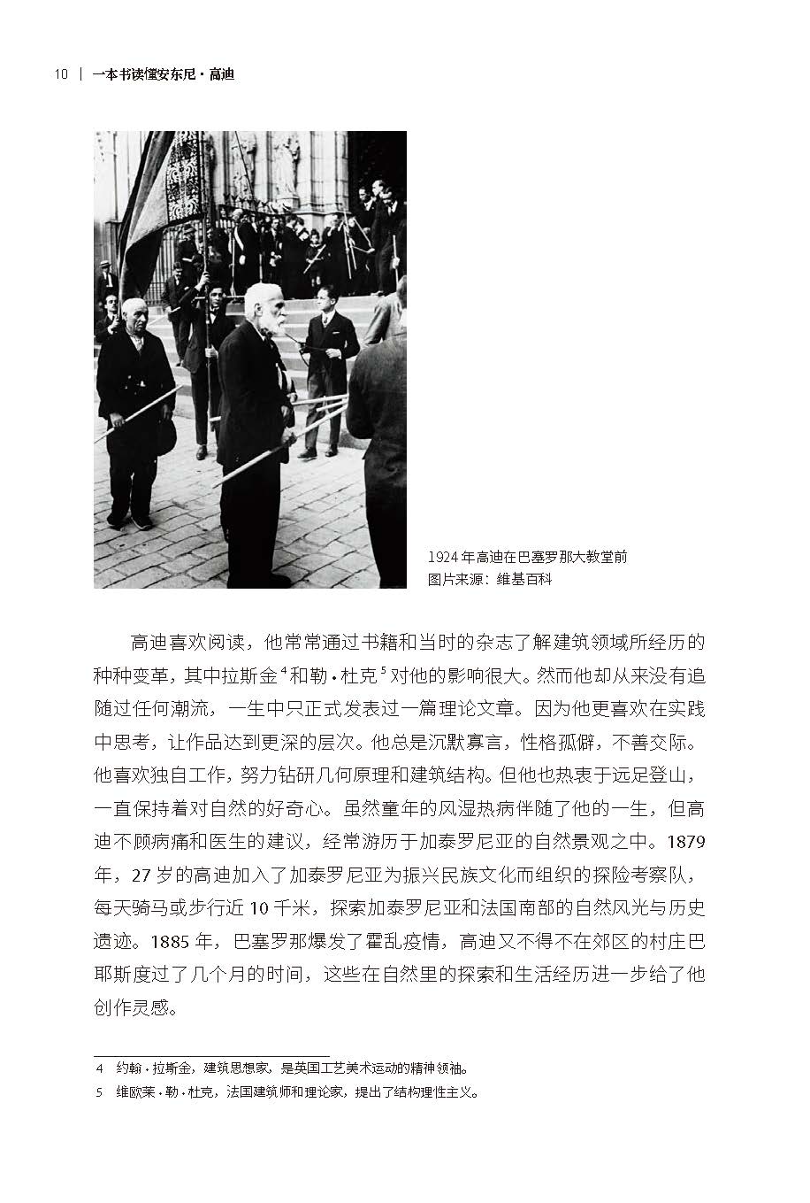 本书的作者用了五年的时间,追随高迪的足迹,在他曾经学习过的建筑学校收集资料,在他留下最多作品的城市实地考察,汇集成本书。无论是作为学习用书、图片资料集还是建筑旅行攻略,各类读者都能在该书中有所收获。