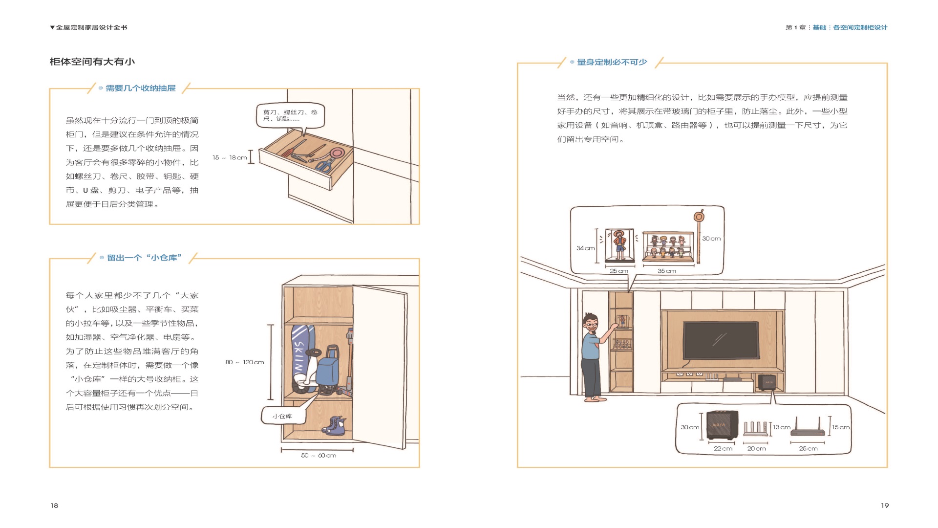 直击定制柜设计痛点的装修入门书;玄关柜、电视柜、橱柜、衣柜、书柜、餐边柜,每一个知识点背后,都有用户亲测和反馈,为装修业主和初级室内设计师提供详尽的定制柜设计指导。