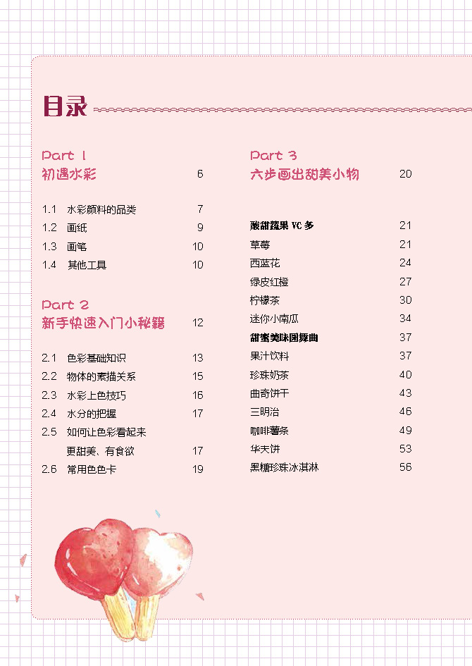 本书立足目前畅销技法书的水彩细化分类,用甜美的色彩来绘制生活中常见的美好事物,读者速成学会后,利用率很高,可做明信片、休闲手账、贺卡送礼、海报绘制等用途。书的内容共五部分,分别是初遇水彩、新手入门小秘笈、六步画出甜美小画、水彩进阶练习和小手工分享。书中不仅讲解实用的技法教程干货,更有作者的绘画思路与心得等方法论,案例步骤简单清晰,包含文字、配色、技法要点,读者短时间练习绘画便可获得成果。课程选例丰富,风格甜美,色彩清新亮丽,具有代表性与时代感,是一部既有学习实用性,也有观赏收藏性的水彩绘本。