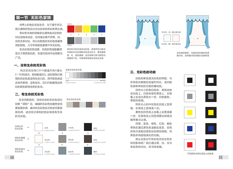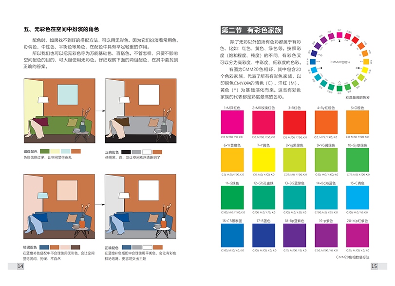 本书是针对新人室内设计师学习软装配色的一本通,全书分为四章,第一章主要介绍色彩的基础认知,包含无彩色系配色、有彩色系配色、色彩的空间结构、色彩的情绪、色彩冷暖等,第二章讲配色法则的实战运用,包含配色逻辑法则黄金比例法则、同频配色法则、呼应配色法则、平衡配色法则、突显法则。第三章介绍色相型配色的原理和实战运用,分别从素美配、自家配、 邻里配、远亲配、撞色配、多色配方面来解讲。第四章主要是讲如何搭配出打动人心的配色,包含色彩印象与配色的关系、找到你心中的喜好色和喜好色分类及分析、空间色彩定位、如何制作配色情绪板、配色的多种可能、九宫格印象配色及九宫格印象连接形与质。最后是配色训练,结合每章节的知识点,为读者提成课后练手。本书不但标明各种色彩的色值,还在重要的小节后安排了配色的涂色练习作业,有兴趣的更可以把配色作业上传到作业的微信,作者更可进行点评指导,该书立足于理论与实践相结合,使读者获得立杆见影的效果。