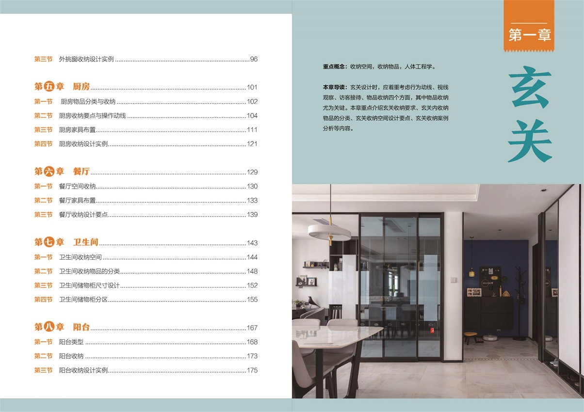本书针对家居室内空间收纳、物品整理进行了详细研究,经过深度调研,穿插大量科学、合理的人体工程学数据。以生动的图文形式,分析并介绍了多种家居收纳实例与设计要点,帮助读者理解和学习精细化收纳知识。全书共分为8章,分别囊括了玄关、客厅、餐厅、卫生间、厨房、书房、卧室、阳台等空间收纳内容,每个空间都分析了空间类型和功能,讲解了家具尺寸的设置,空间设计的要点,并配备了实用设计案例。解决现代人的生活习惯与日常收纳问题,指导如何合理使用生活空间。