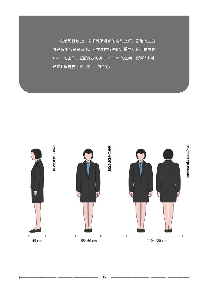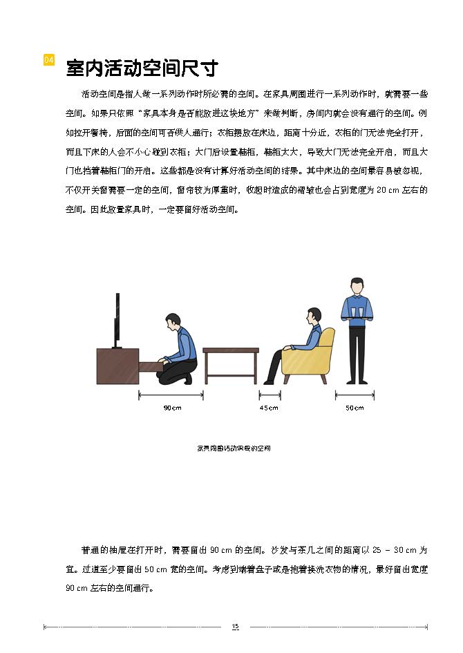 在软装设计中,尺寸数据具有非常重要的参考价值,科学合理的尺寸规划可以使空间更符合人们日常生活的需要,同样可以使得软装元素在空间中的应用更为协调和美观。本书并不是一本标注细部尺寸资料集,而是通过详细分析人的身体尺度、不同部位的尺寸以及行走坐卧等不同行为条件下,对空间尺度的需求,以图解的形式,形象而直观地让读者学会如何进行室内空间设计。
