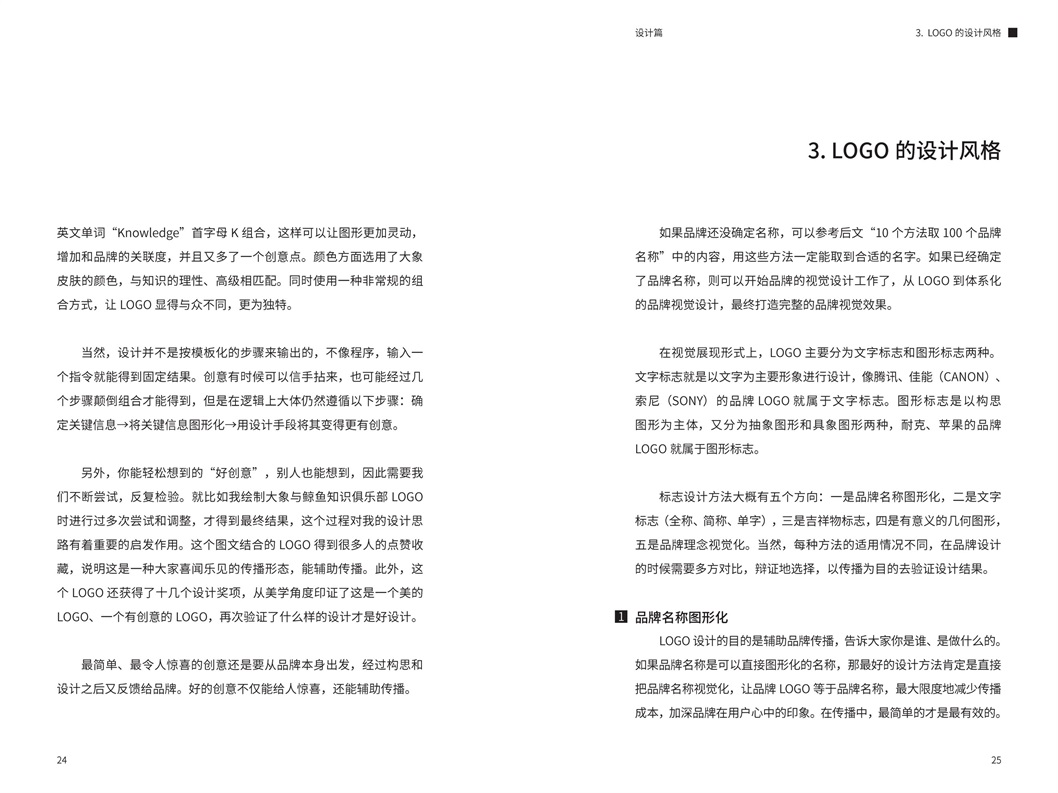 本书分为两大部分:设计与传播。前者主要讲品牌的设计,分别从什么是好设计、怎样设计一个好Logo、品牌怎样从设计到落地等方面介绍设计师如何设计品牌各种视觉物料;后者主要讲品牌的传播,分别从品牌传播三原则、品牌传播中要避免的问题以及品牌创立需要准备的东西等方面入手,介绍品牌传播需要注意的各种问题和宣传销营的技巧等。总体而言,好的设计一定是逻辑先行,辅助传播,落地漂亮的。作者结合自己对当前品牌的设计与营销传播两方面的看法,让本书内容更加实用。