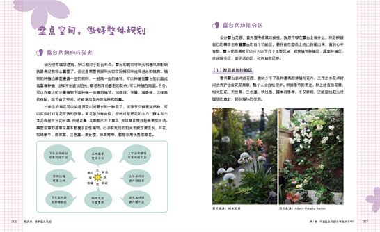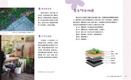 《超实用!我的露台花园》用简单易懂的方式讲解了打造露台花园所需要了解的一些内容,例如露台的功能分区,适合露台种植的植物和养护知识,露台的装饰等,更与读者分享了一些精心挑选的露台花园打造案例,同时配以精美的图片和详细的文字说明,与读者分享露台花园的打造经验,具有很强的实用性。这些案例都是由园艺达人提供的,这些园艺达人有丰富的园艺经验,这些经验都是在打造自家露台花园的过程中摸索总结而来,并将这些经验毫无保留的分享给读者,让您了如何打造露台花园及花园的后期维护。本书图片精美,既赏心悦目又可以带给读者真实有用的参考。