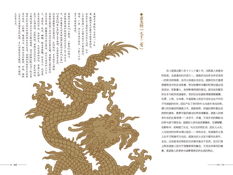 1.中国传统纹样历史悠久,分布广泛,种类繁多,风格各异。本套书精选了作者团队挖掘整理的龙纹、凤鸟纹、鹤纹、蝴蝶纹等动物纹样,以及牡丹花纹、八角花纹、莲花纹、菊花纹等植物纹样。这23款纹样包罗万象,精美绝伦,上溯新石器时代,下至明清时期,从一草一木,到龙凤祥瑞,除了涉及人口众多的汉族,还有壮族、苗族、满族等少数民族的大量民间纹样,为读者带来一副广阔的纹样画卷。