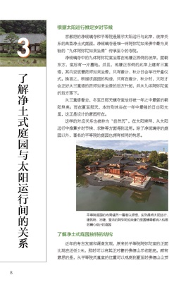 本书共分为三章,用简洁的语言梳理了日本庭园发展史,并用图解的方式呈现造园细部。第一章讲述不同时代的代表性园林,有平安时代的净土式庭园、镰仓时代的书院造庭园、安土桃山时代的茶庭等。第二章讲述了根据构成要素欣赏日本庭园的方法,比如从池塘、瀑布、池组、绿篱、石灯笼、苑路等要素欣赏庭园的建造意趣。第三章讲述了造园的基本知识和日本历代造园大师。此外,书中还附有修学院离宫、桂离宫等名园参观指南和日本庭园参观地图,以便读者携书游览。