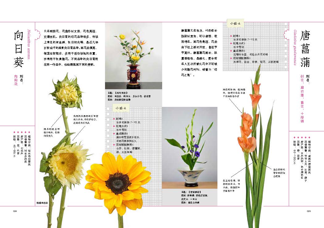 本书收集了市面上较具人气的常见花材,南北地区兼顾,按插花的实用功能分为鲜切花、鲜切叶、鲜切果和鲜切枝四类。每种花材除了花名、基本特性、寓意、尺寸、观赏期等基本信息外,还特别介绍了一些养护要点和实用的花材搭配技巧,并以图解的方式展示出来,通俗易懂,参考性强。