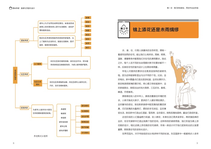 本书主要分为3个章节,第 1 章介绍适老化改造与设计的必要性和改造原则;第 2 章细致地剖析了9个不同地点、不同户型、不同家庭结构的适老化改造案例,展示了改造前后的平面对比图,并且详细介绍了改造优点和要点;第 3 章介绍了适老化改造与设计中建材和智能产品的选用原则。本书是以漫画和实景图结合的形式来呈现的,浅显易懂,让读者以轻松愉快的方式快速掌握适老化改造和设计的诀窍和要领。