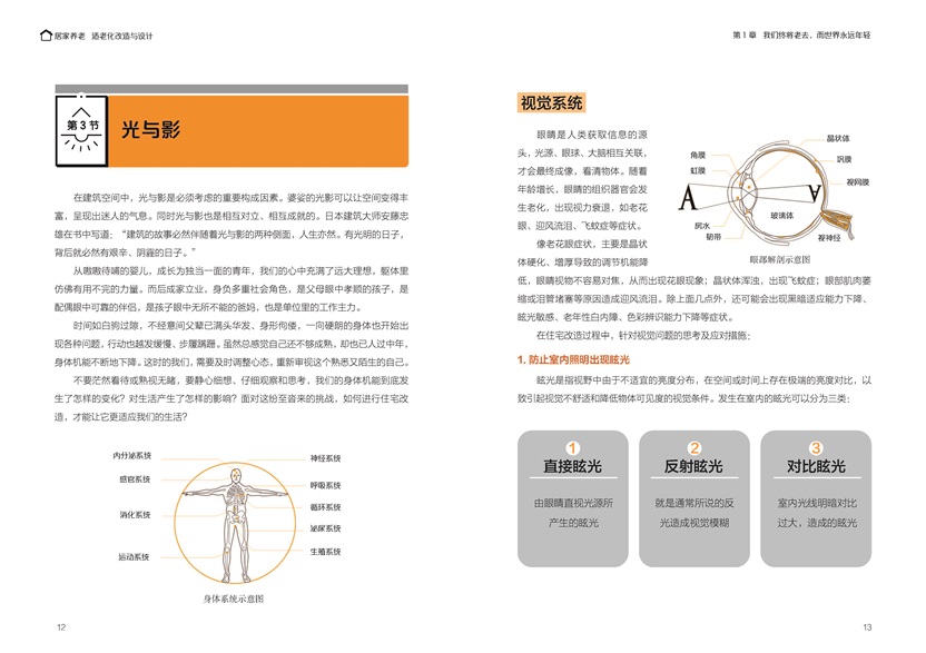 本书从视觉、听觉、嗅觉等9大身体系统进行梳理,为读者直观展现居家养老可能会出现的问题以及解决方案,图文并茂,直观易读。