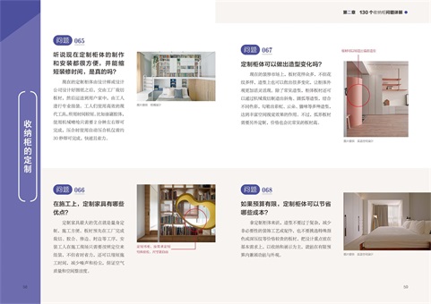 ★从七大方面讲解收纳柜的130个常见问题,包括收纳柜的风格与形式,收纳柜的空间、动线与尺寸,收纳柜的定制,收纳柜的尺寸,柜门的造型与变化,收纳柜的工艺与价ge,收纳柜的五金与配件。